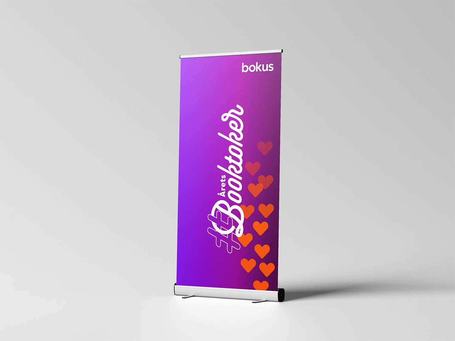 Utgångspunkten var att översätta den livliga och kreativa kulturen på TikTok till ett formspråk som känns unikt för Bokus. Hashtag-symbolen i logotypen syftar på #Booktok – det community där prisets målgrupp finns. Färgpaletten bygger på en gradient av lila nyanser för att skapa djup och rörelse, och förmedlar kreativitet, teknik och en feminin känsla. Det orange hämtas från Bokus egen identitet och tillför kontrast och energi. De orange hjärtana refererar till “likes” som syns i livesändningar och förstärker känslan av digital interaktion. Typografin i skrivstil speglar kärnan i priset – kärleken till ord, berättelser och den kreativa delningen av läsglädje.