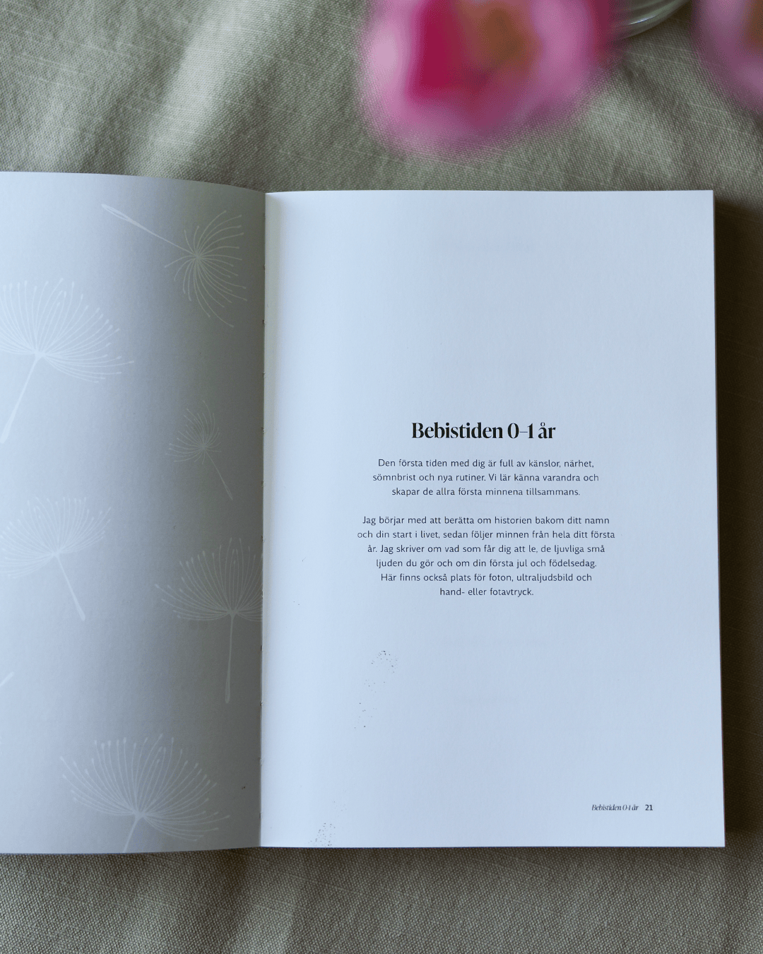 Resultatet blev en vacker och hållbar bok, tryckt med öppen bindning för att ge en mer personlig och hantverksmässig känsla. En bok där materialval, form och uttryck är tänkta att hålla över tid – och fungera som en trygg plats för minnen genom hela barnets uppväxt.